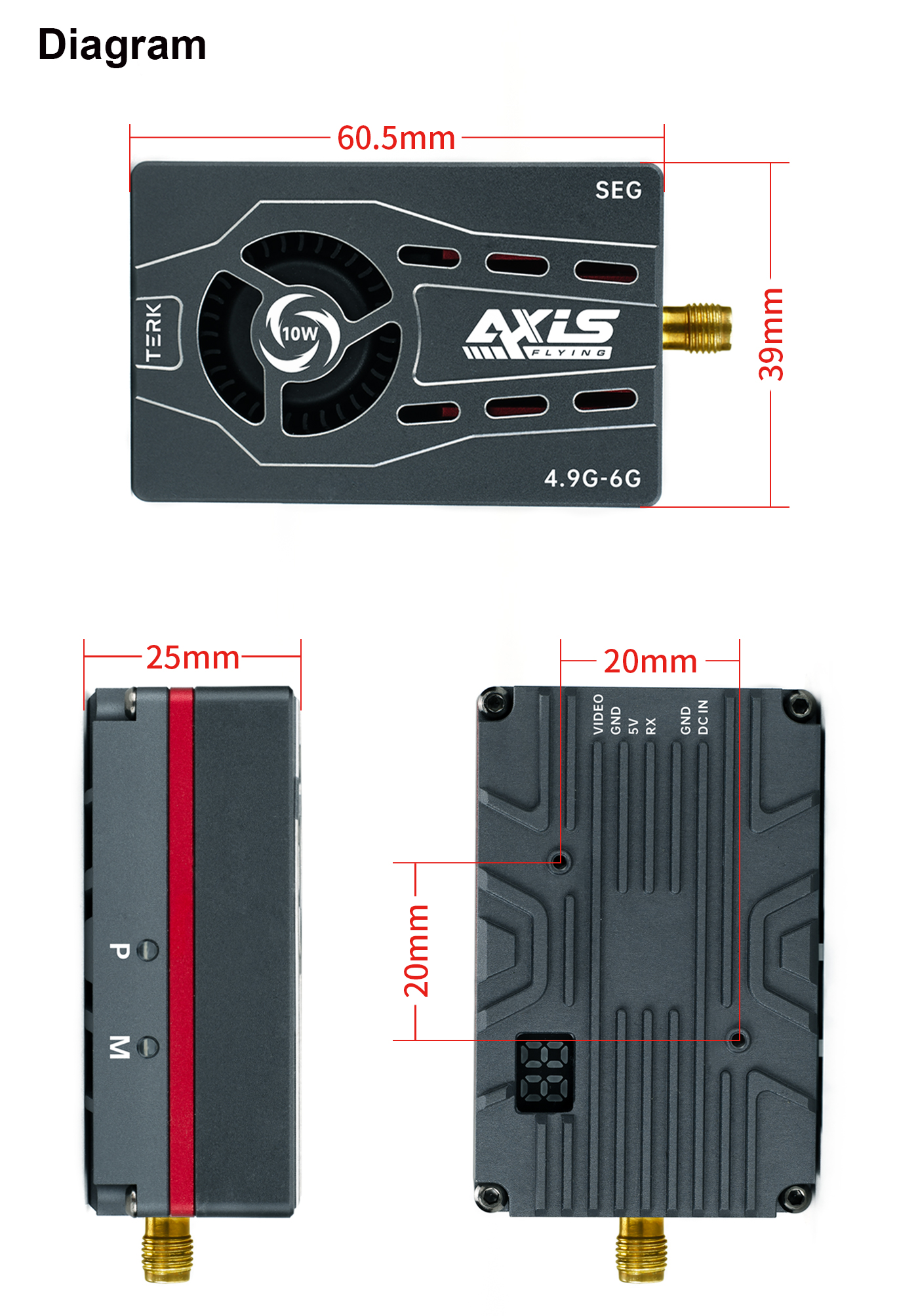 Axisflying 4.9G-6G SEG 10W VTX ANALOG TERK Transmitter High Power FPV Transmitter Module