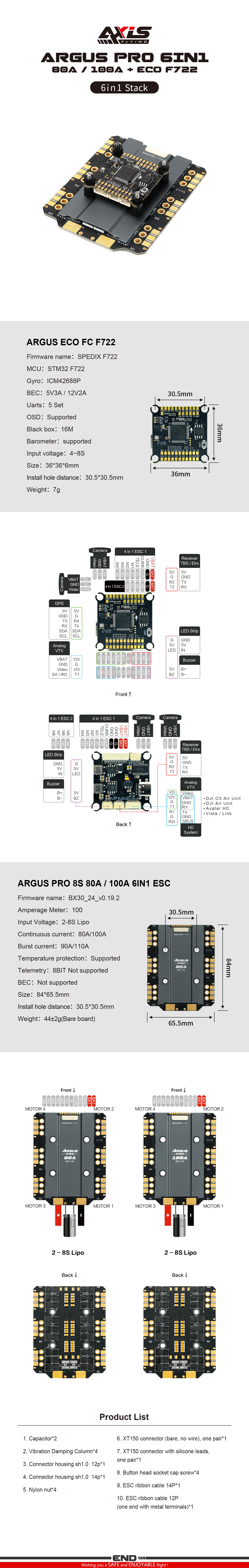 Axisflying ARGUS PRO 6-IN-1 80A/100A +ECO F722 Stack For 13inch / 15inch