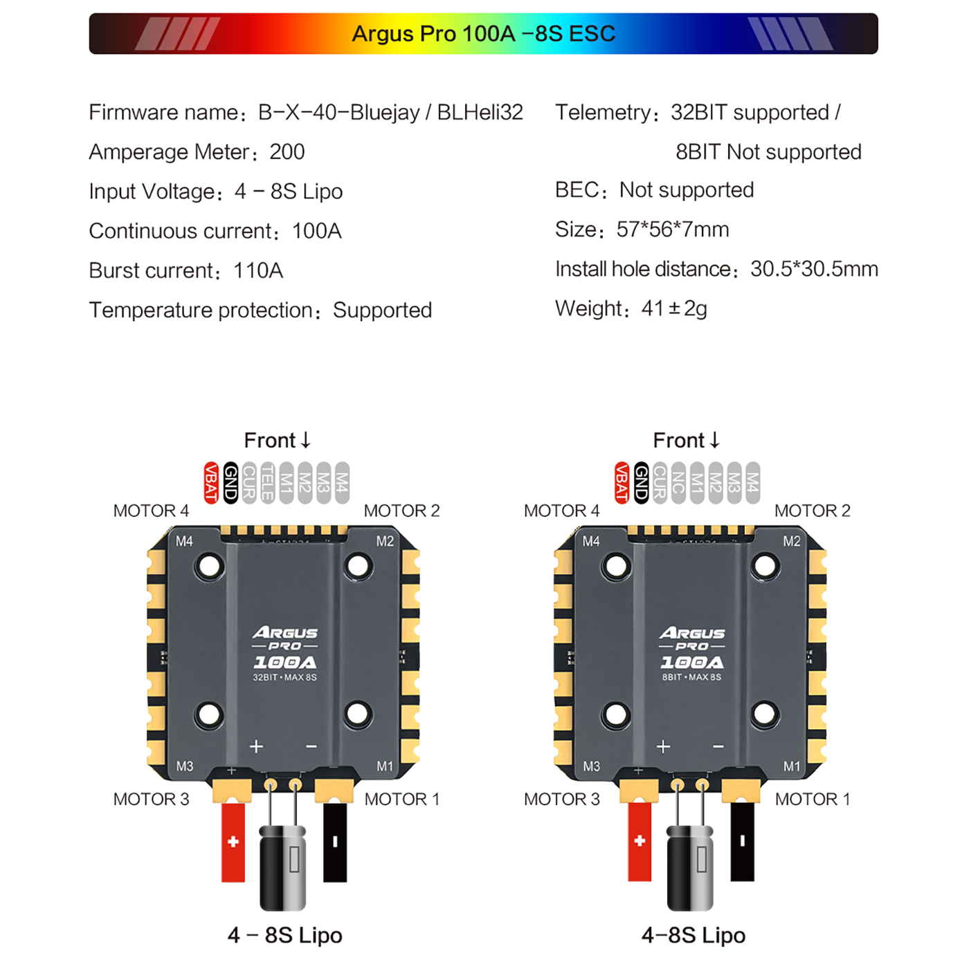 Axisflying ARGUS PRO 100A+ ECO F722 Stack 8S With heat dissipating aluminum parts for 15-inch FPV drones / 8-bit / 32-bit